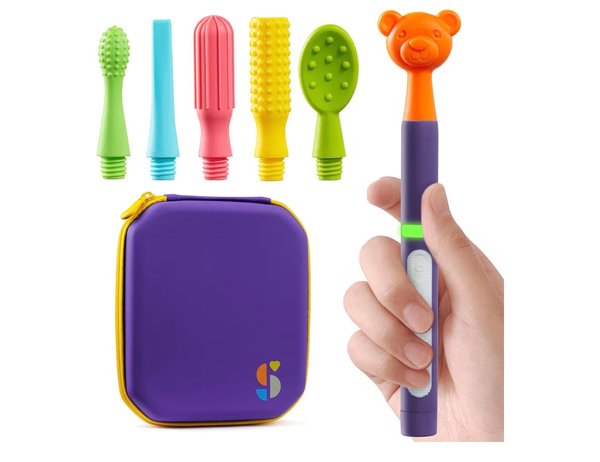 Vibración para estimulación extra e intraoral con 6 cabezales de diferentes texturas, con 3 intensidades de vibración